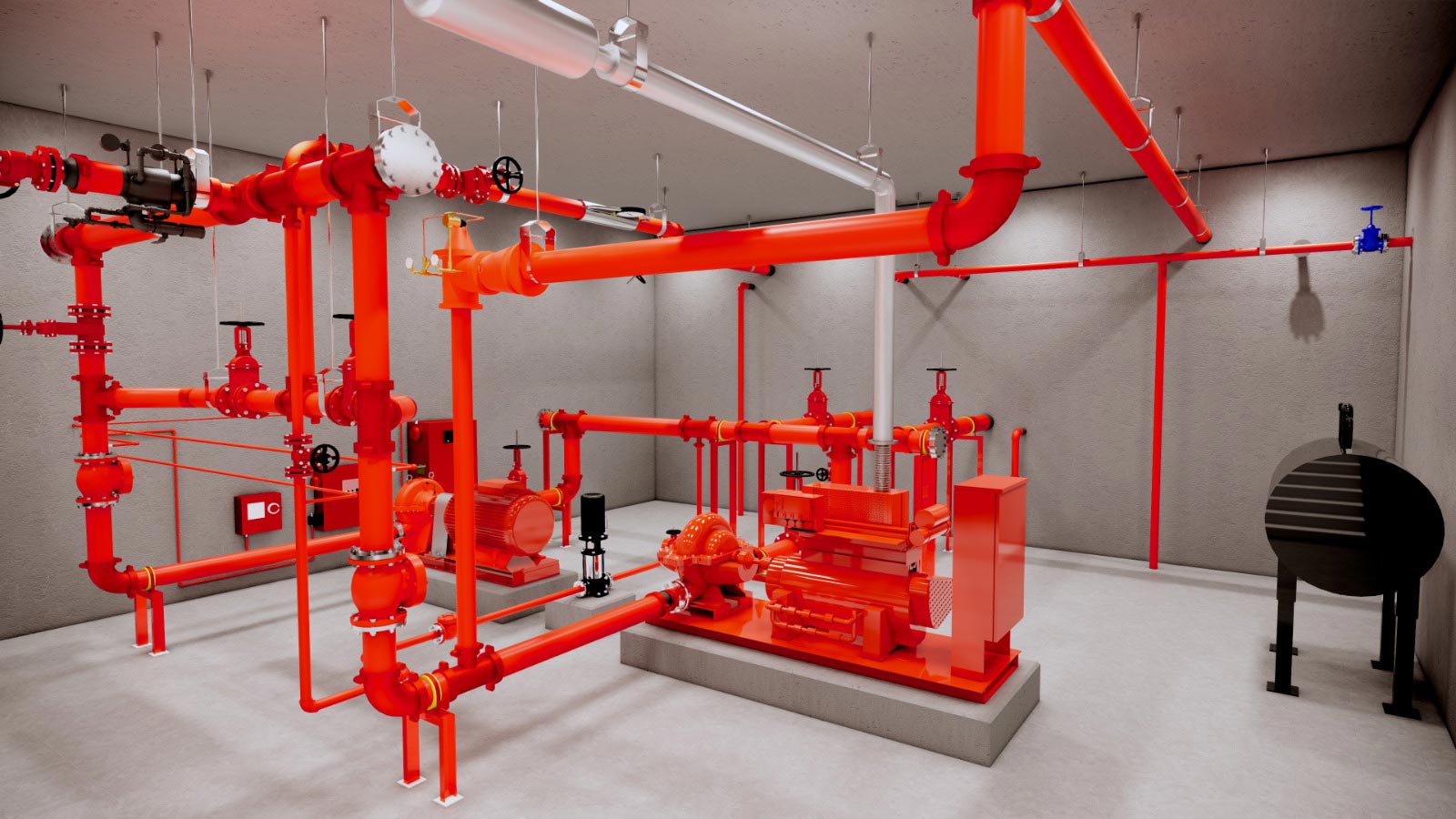 - اعمال شبكات إطفاء الحريق وغرف الطلمبات